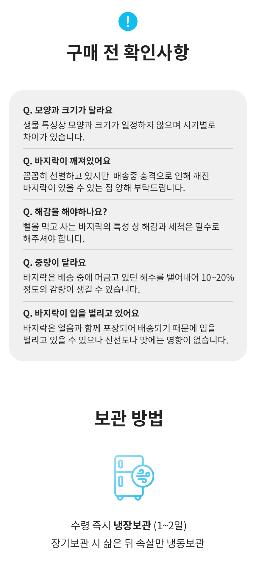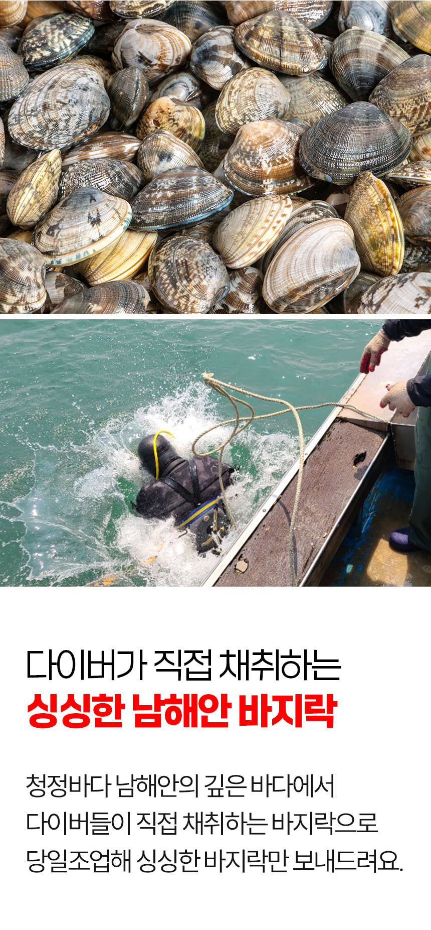 다이버가 당일 잡은 꼼꼼선별 바지락