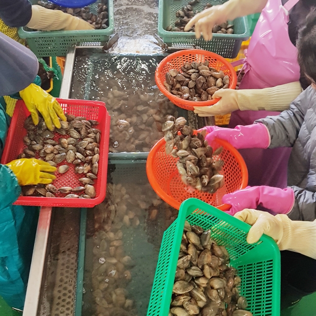 당일 조업 제철 남해안 생물 바지락