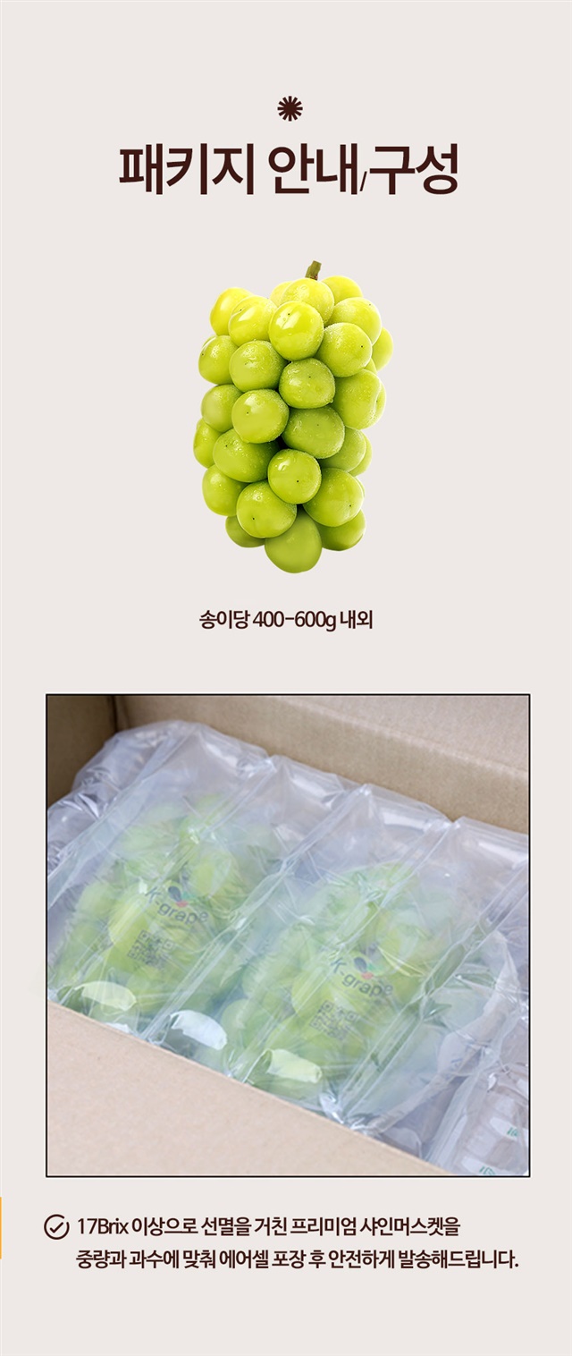 [수출용]17브릭스 고당도 샤인머스켓 1.5kg 이상 망고포도
