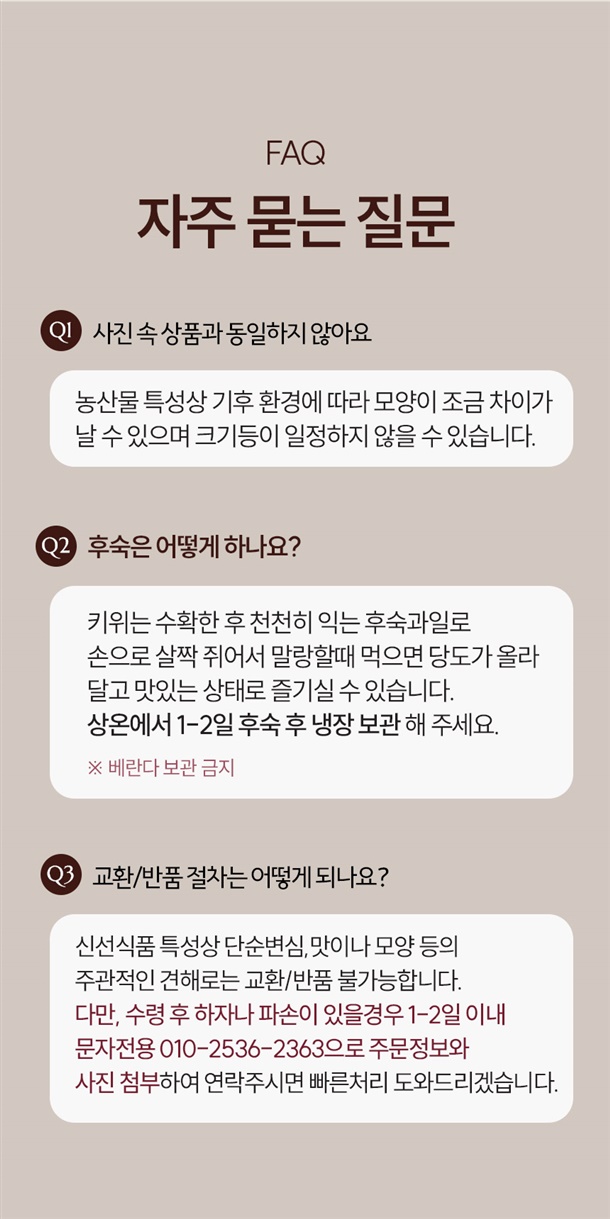 | 8. 보관방법 또는 취급방법 | 수령 후 냉장 보관 및 말랑한것은 빠른 섭취 권해드립니다. |